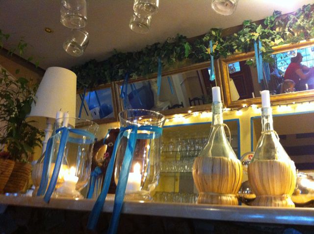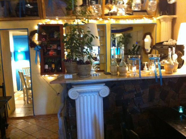 Sala, po rezygnacji właścicieli z wynajmowanego obszernego fragmentu, mieszczącego jeszcze rok temu 10 stolików, skurczyła się do czterech, za to przybyło kącików. Może to i lepiej – mniej stolików to mniejsze wyzwanie dla obsługi, a kąciki nadają sznyt autentycznej greckiej tawerny.