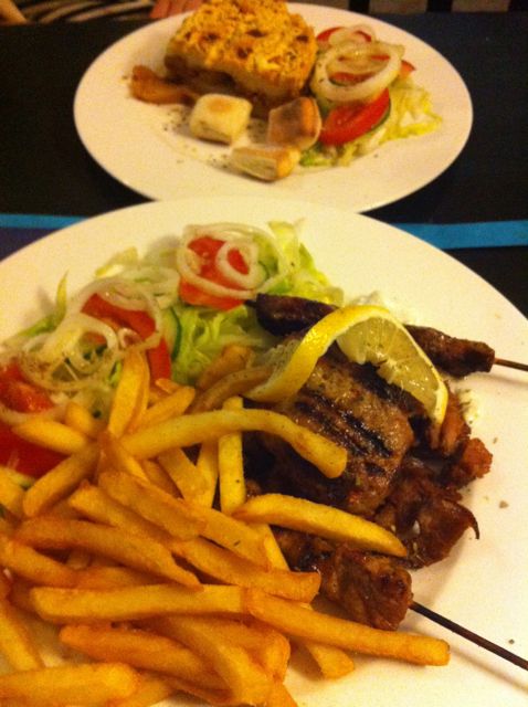 Na drugie zamówiłam musakę, gdyż zbieram doświadczenia w tej dziedzinie i pomijając kartofle, uważam, że łapie się do rywalizacji wewnąrzgreckiej, zaś małżonek zamówił mix grecki, składający się z szaszłyków, gyrosa i bifteka (kotlet taki mielony). Gdyby nie góra frytek, byłby wypas. Ja nie wiem, skąd ta mania pakowania do wszystkiego fury przetworzonych gruli. Bo jesteśmy narodem ziemniaczanym? No jesteśmy, nawet u Janusza Głowackiego jeden z bohaterów ma ksywkę Potato, ale czy na pewno chcemy utrwalać ten stereotyp? Zwłaszcza, odkąd nastolatki tyją nam na potęgę w przekonaniu, że frytki to odżywcze warzywo?