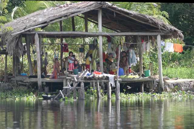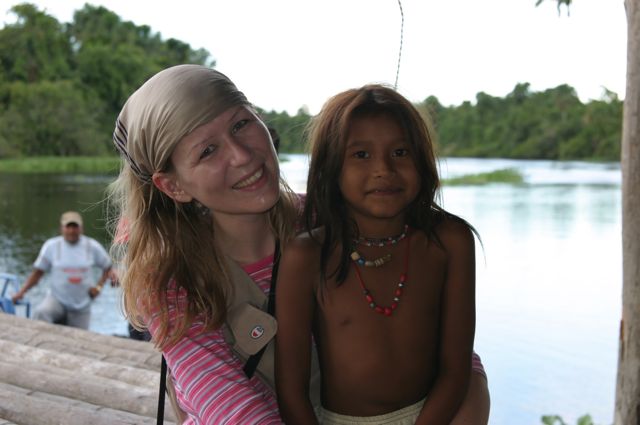 A, tak nawiasem mówiąc, jeśli kogoś zawieje w te tereny, niech nie liczy na rodzinne zdjęcie typu Unicef  w otoczeniu uśmiechniętej, radosnej miejscowej dzieciarni.  Przez wyjazdem naoglądałam się takich zdjęć – a to Angelina Jolie w afrykańskiej wiosce, a to Małgorzata Foremniak tuląca do piersi niemowlę, i pragnę zapewnić, ze to jedna wielka ściema.  Albo dzieci zostały dorobione w photoshopie albo to w ogóle były jakieś dobrze ucharakteryzowane lalki. Zgoda, daleko mi do Angeliny Jolie, ale to jednak nie usprawiedliwia  rozpaczliwego ryku, jaki wydawały z siebie indiańskie dzieci przy każdej próbie zbliżenia się do nich. Zbite w grupkę, z bezpiecznej odległości wytykały mnie palcami, jak wyjaśnił mi nasz wiecznie pijany przewodnik, chodziło o włosy.