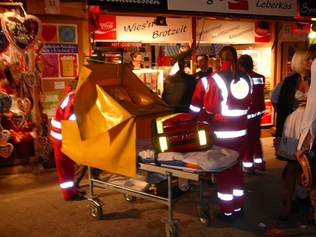 Oktoberfest przytuli do łona każdego alkoholika, nie pytając o wiek, pochodzenie ani poglądy. Każdy jest równy i równo może się najebać. W razie problemów, na przykład zdrowotnych, do akcji ruszają siły szybkiego reagowania czyli oktoberfestowe pogotowie. Bezpłatnie załadują nas na nosze, opatulając kocem i namiotem, uniemożliwiającą rozpoznanie twarzy, na wypadek jakbyśmy byli celebrytą, za którą równym sznureczkiem podążają paparazzi. Monachium jest bowiem miastem, gdzie nie tylko można się bezkarnie upić, lecz także upić się anonimowo. Po dostarczeniu nas do namiotu medycznego, popodłączają nas do kroplówek, które w ciągu paru godzin postawią nas na nogi i umożliwią dalsze picie. W miasteczku oktoberfestowym można więc spędzić miesiąc zwalając się i stając na nogi każdej doby, na koszt miasta.