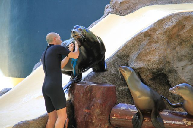 I rzeczywiście pokaz odstawiły, mam wrażenie, na odwal się. Zresztą w Loro Park orki mają specjalne przywileje. Lwy morskie występują pięć razy dziennie, delfiny cztery, a orki tylko dwa. Mogą więc spać do południa, a od 16-tej już mają fajrant, podczas gdy lwy nadal siedzą w biurze.