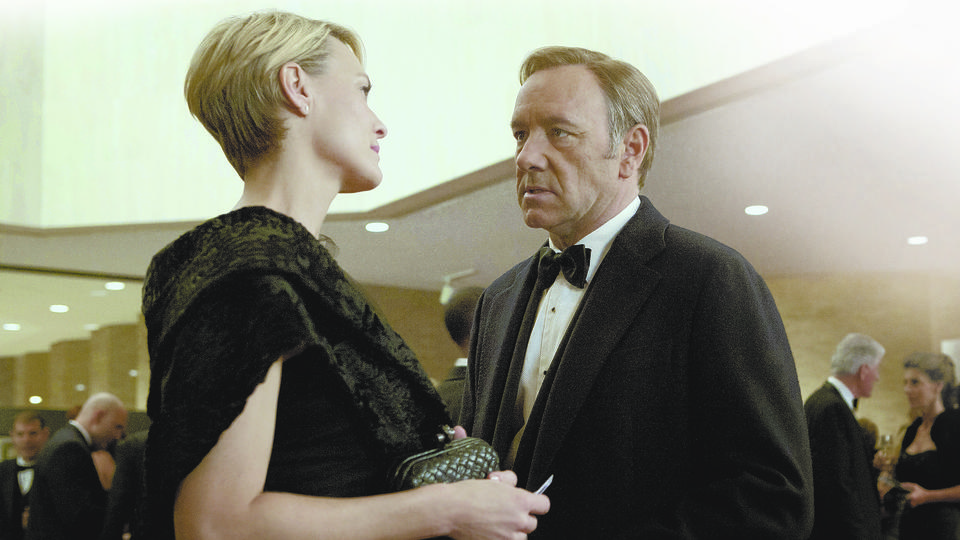 I na tym nie koniec. Kolejny przewrót dokonał się właśnie na gruncie seriali. Dotąd monopol na ich produkcję miały stacje telewizyjne. Widz mógł wybierać jedynie między świętojebliwymi serialami stacji ogólnodostępnych, w których zbłąkani małżonkowie nieodmiennie wracają na łono rodziny, a kołdry zawsze są asymetryczne, żeby przykryć co konieczne, a produkcjami kanałów płatnych, gdzie wszyscy uprawiają seks ze wszystkimi, a czasem, jak im puszczą nerwy, mogą też zostać seryjnymi mordercami. Aż do teraz. Monopol został bowiem przełamany i powstał serial “House od Cards” wyprodukowany przez Netflix. Jest to przedsięwzięcie pod wieloma względami pionierskie. Po pierwsze Netflix nie jest stacją telewizyjną tylko rodzajem gigantycznej wypożyczalni filmów i seriali, czyli pracował dotąd na powierzonym materiale. Po drugie do produkcji zaangażowano największe nazwiska. Reżyserem pierwszych dwóch odcinków oraz producentem wykonawczym całości jest David Fincher, zdobywca Złotego Globu za “The Social Network”, w głównych rolach wystąpili dwukrotny laureat Oscara Kevin Spacey oraz zdobywczyni Złotego Globu za “Forresta Gumpa”,  Robin Wright.  Po trzecie serial został przedstawiony widzom jako gotowa, 13-odcinkowa całość.