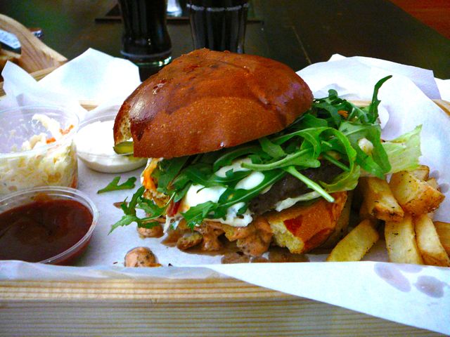 Sam hamburger pod względem smaku przypomina mi ten w Wendy’s, sieci, która nigdy nie weszła do Europy, a szkoda, bo moim zdaniem, hamburgery ma znacznie lepsze niż McDonald i Burger King. Pozostaje do omówienia kwestia techniki. Otóż – to także informacja z Kuchennych rewolucji – klasyczny hamburger powinien mieć objętość większą niż pysk. Należy go ścisnąć palcami, nie zważając na to, co wyleci bokami, i konsumować ręcznie, na zasadzie wszystko naraz. Kwintesencja smaku zawiera się bowiem w doznaniu wielowątkowym. Przewodnim wątkiem jest sam burger, ale liczy się także sos, ser, bekon, podpieczona buła, znaczy dodatki. Cytując klasyka, wszystko musi pływać w tym gównie. Widziałam osoby, przymierzające się do dania z nożem i widelcem, taki sposób nie jest jednak koszerny, a wręcz nawet zahacza o ignorancję. Mnie się udało, a nawet zdołałam się nie wysmarować sosem od stóp do głów, podstawa to zabezpieczyć zawczasu odpowiednią ilość serwetek.