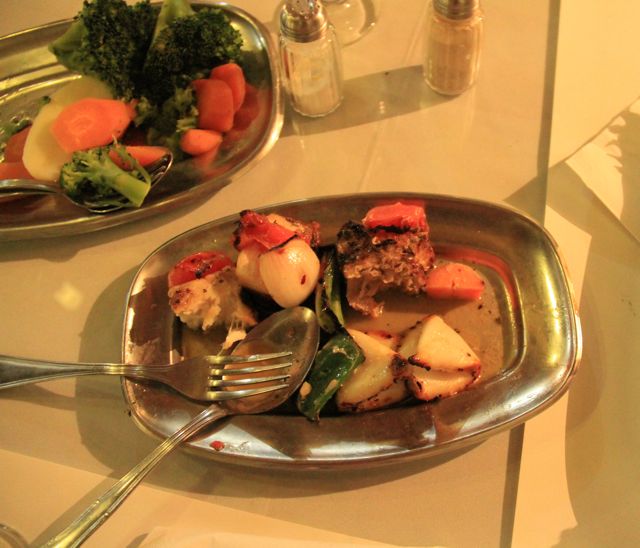 W pokojach hotelowych w Funchal są na stolikach  rozłożone albumy poznawcze dla turystów, nazywają się one jakże oryginalnie Goldenbooks. Można się stamtąd dowiedzieć, gdzie pójść, co zjeść, jakich doświadczyć wrażeń kulturalnych, co kupić  i  jak się skatować nocą. Jeśli chodzi o te dwie ostatnie kwestie to zakupoholicy i wielbiciele życia nocnego raczej nie poszaleją. Przynajmniej tak wynika z książki, osobiście nie sprawdzałam. Pieniądze zaoszczędzone na zakupach i dziwkach można jednak wydać na rozkosze podniebienia i tu wachlarz jest bardzo szeroki. Skupiskiem restauracji z muzyką na żywo jest malutki zaułek o nazwie Travessa das Tores, którą w języku bardzo pośrednim przetłumaczyłam na “talerz byków”.  Na rogu z ulicą Swiętej Marii mieści się restauracja u Arsenia. Gdyby nie książka, pewnie byśmy do niej nie trafili.